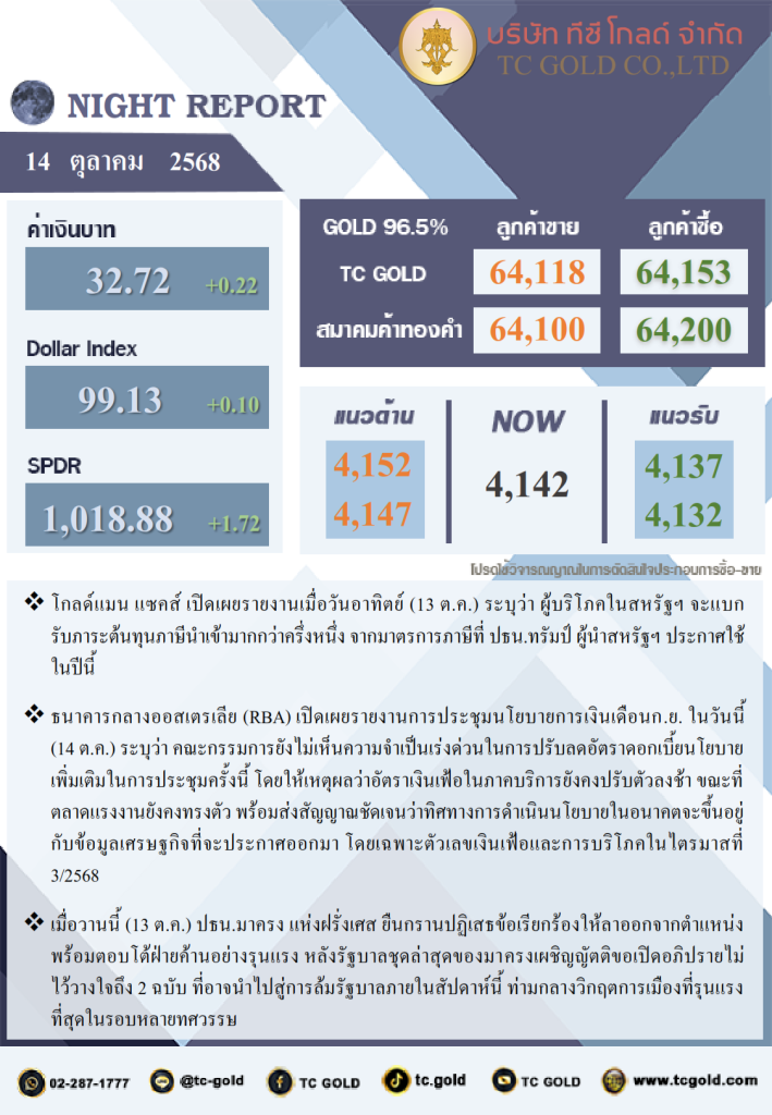บทวิเคราะห์ภาคบ่าย ประจำวันที่ 14-10-25