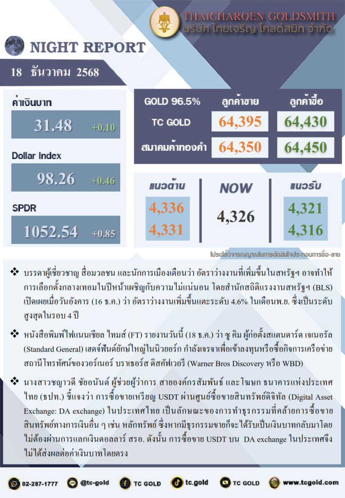 บทวิเคราะห์ภาคบ่าย ประจำวันที่ 18-12-25