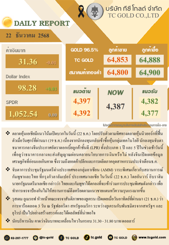 บทวิเคราะห์ภาคเช้า ประจำวันที่ 22-12-25