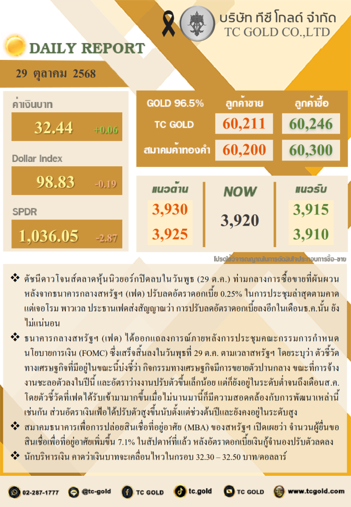 บทวิเคราะห์ภาคเช้า ประจำวันที่ 29-10-25
